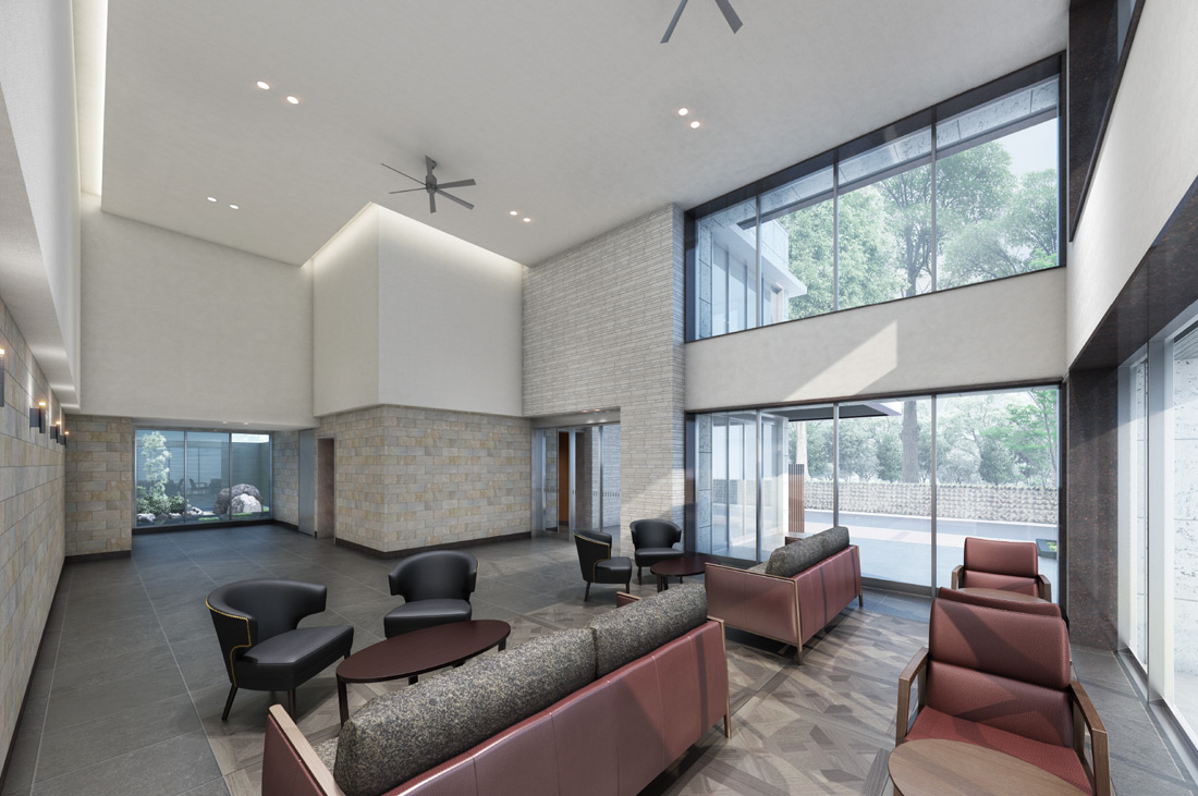 ※掲載の各完成予想図は設計図面を基に描き起こしたもので、実際とは異なる場合があります。また、植栽は生育後を想定して描いております。家具等は変更になる場合があります。予めご了承ください。