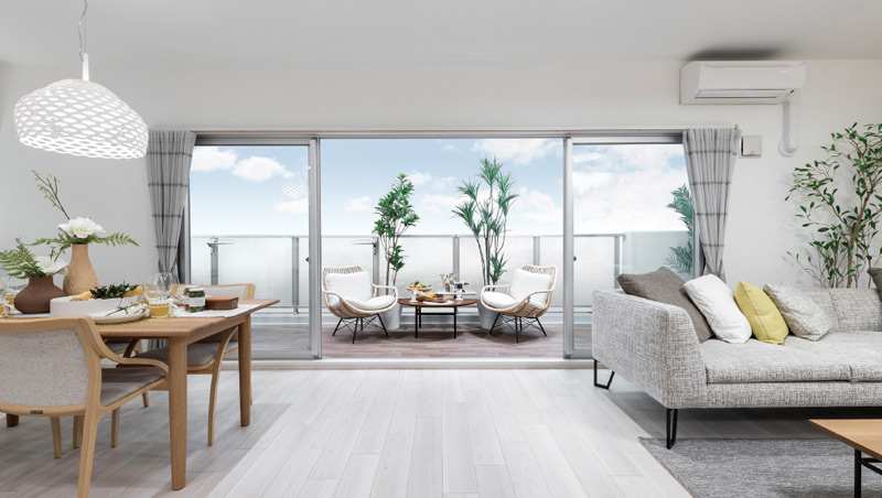 ※掲載のバルコニー写真は現地20階相当の高さから撮影(2022年10月)し、ヴェルディシリーズのバルコニー写真を合成したもので、実際とは異なります。家具・調度品は販売価格に含まれません。