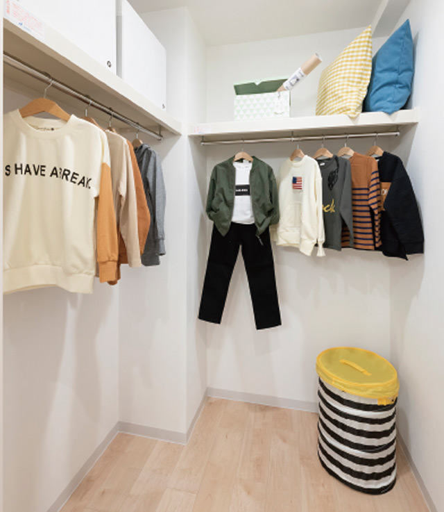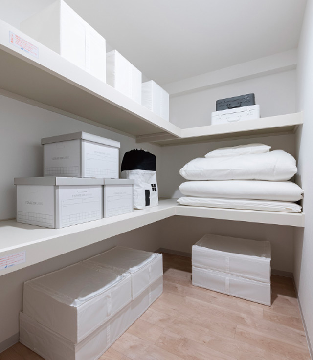 ワードローブから生活グッズや季節用品まで、効率よくしまうことができます。収納スペースに余裕があれば、室内はいつもすっきり広々。より広く、快適に住まうことができます。
